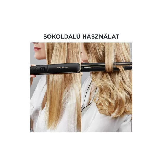 2 az 1-ben használat, így a göndörítheti is vele haját, fejlett túlmelegedés-megelőző technológia, egy mozdulattal végzett hatékony hajvasalás a mozgó vasalólapoknak köszönhetően, 30 másodperc alatti gyors felmelegedés és még sok más.