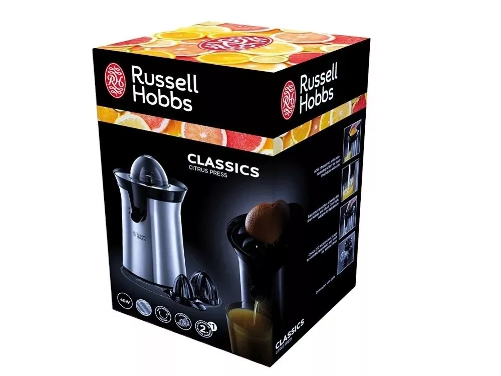 Nincs is frissítőbb ital korán reggel, mint egy pohár frissen facsart, vitamindús narancslé! A Russell Hobbs Classics citruspréssel ezt bármilyen erőfeszítés nélkül, mindennap pillanatok alatt elkészíthetjük! A készülék nyomásra automatikusan működésbe lép és könnyedén kifacsarja a narancs vagy grapefruit levét. A cserélhető facsarófejeknek köszönhetően a kisebb fejjel citrom vagy lime levet is nyerhetünk egy finom, hűsítő limonádéhoz vagy koktélhoz!