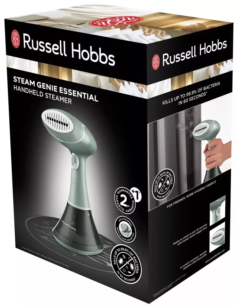A Russell Hobbs Steam Genie Essential varázsütésre eltünteti a gyűrődéseket – vasaló vagy vasalódeszka nélkül. Mindössze 45 másodperc alatt felmelegszik, és akár 9 perc gyűrődéseltávolító erőt biztosít. Ideális, ha az ágynemű gyűrődéseit szeretnéd eltüntetni, vagy a vállfán heverő ruhákat szeretnéd felfrissíteni. A kivehető szöszkeféje a textíliákon lévő szöszök és szőrszálak eltávolítására is praktikus. Kompakt méretének köszönhetően utazásaid során is magaddal viheted a gyűrődésmentes stílusért, bárhová is mész.