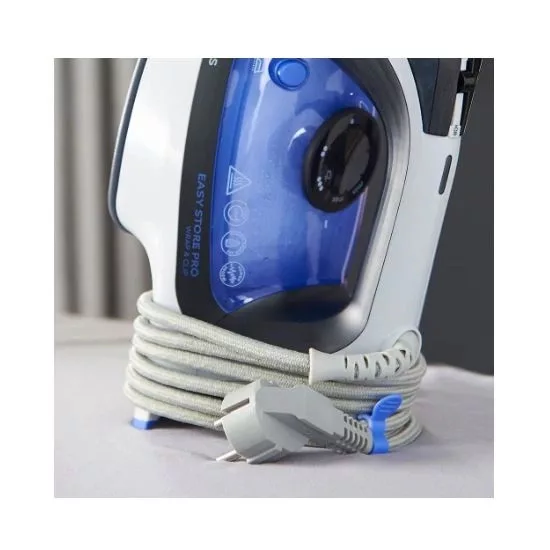 Amikor nem használja, tekerje körbe a kábelt a vasaló alja körül, csíptesse biztonságosan a helyére, hogy megakadályozza annak lelógását, megkönnyítve ezzel a vasaló tárolását.