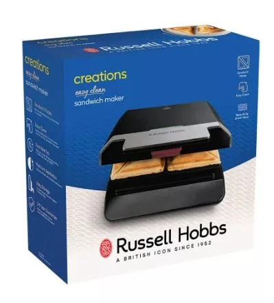 Ha azt gondolja, hogy a szendvicskészítők tisztítása macerás, gondolja újra! A Russell Hobbs Creations Easy Clean szendvicskészítőt úgy tervezték, hogy a tisztítása gyors és egyszerű legyen. A speciálisan kialakított sütőlapok a fedelet becsukva felvágják és lezárják a szendvicseket, finom töltelékkel teli zsebeket létrehozva, amelyek pirításra készen állnak. A sütőlapok mindössze 108 másodperc alatt melegednek fel, ami 24%-kal gyorsabb felmelegedést* eredményez, a könnyen tisztítható, tapadásmentes bevonat pedig 3-szor tartósabb* az általános kopással szemben, így akár egyetlen törléssel** is gyorsan tisztítható. Mutatós matt fekete kivitelű, rozsdamentes acél betétű és a függőleges tárolást lehetővé tevő Creations Easy Clean szendvicskészítőnek köszönhetően még sosem volt ennél egyszerűbb a szendvicssütés.