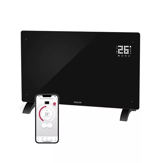 A fűtést könnyen beállíthatod a közvetlenül a fűtőtest kijelzője alatt található érintő vezérlőelemek segítségével, vagy használhatod a távirányítót. Ha pedig nem tudsz a fűtőtesthez menni, mert éppen egy izgalmas filmet nézel, vagy nem vagy otthon, és fűtött helyiségbe szeretnél hazatérni, mindent kényelmesen beállíthatsz a Sencor HOME alkalmazáson keresztül. Az applikációnak köszönhetően munkából vagy utazásból hazatérve azonnal átmelegedhetsz, és bárhol is legyél, telefonod adatkapcsolatának hatósugarában mindig pontos információt kapsz az otthoni hőmérsékletről.