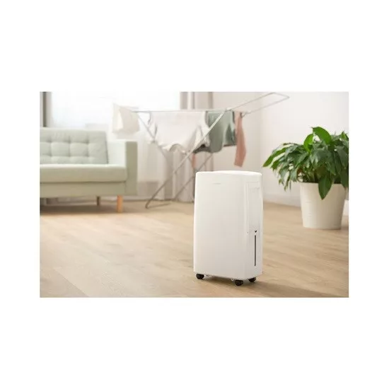 A Sencor SDH 1028WH párátlanító készülék segítségével akár 35 m2 terület pára tartalmát tudod szabályozni. A készülék két sebességi fokozattal lett ellátva, mely közül Te választhatod ki a megfelelőt (standard funkció / turbó üzemmód), valamint 3 különböző működési mód áll a rendelkezésedre. A vezérlése történhet egy beépített elektronikus panellel, illetve a Sencor Home alkalmazás segítségével. A gyűjtőtartályban lévő víz mennyiségét folyamatosan nyomon tudod követni az indikátornak köszönhetően, az esetleges maximális kapacitása elérésekor a készülék automatikusan kikapcsol. 24 óra alatt akár 10 literes páramentesítési teljesítmény, megbízhatóan 35 m2-es területet fed le. A kompakt kialakítás, az integrált fogantyú és a mozgást segítő kerekek növelik a felhasználóbarát élményt.