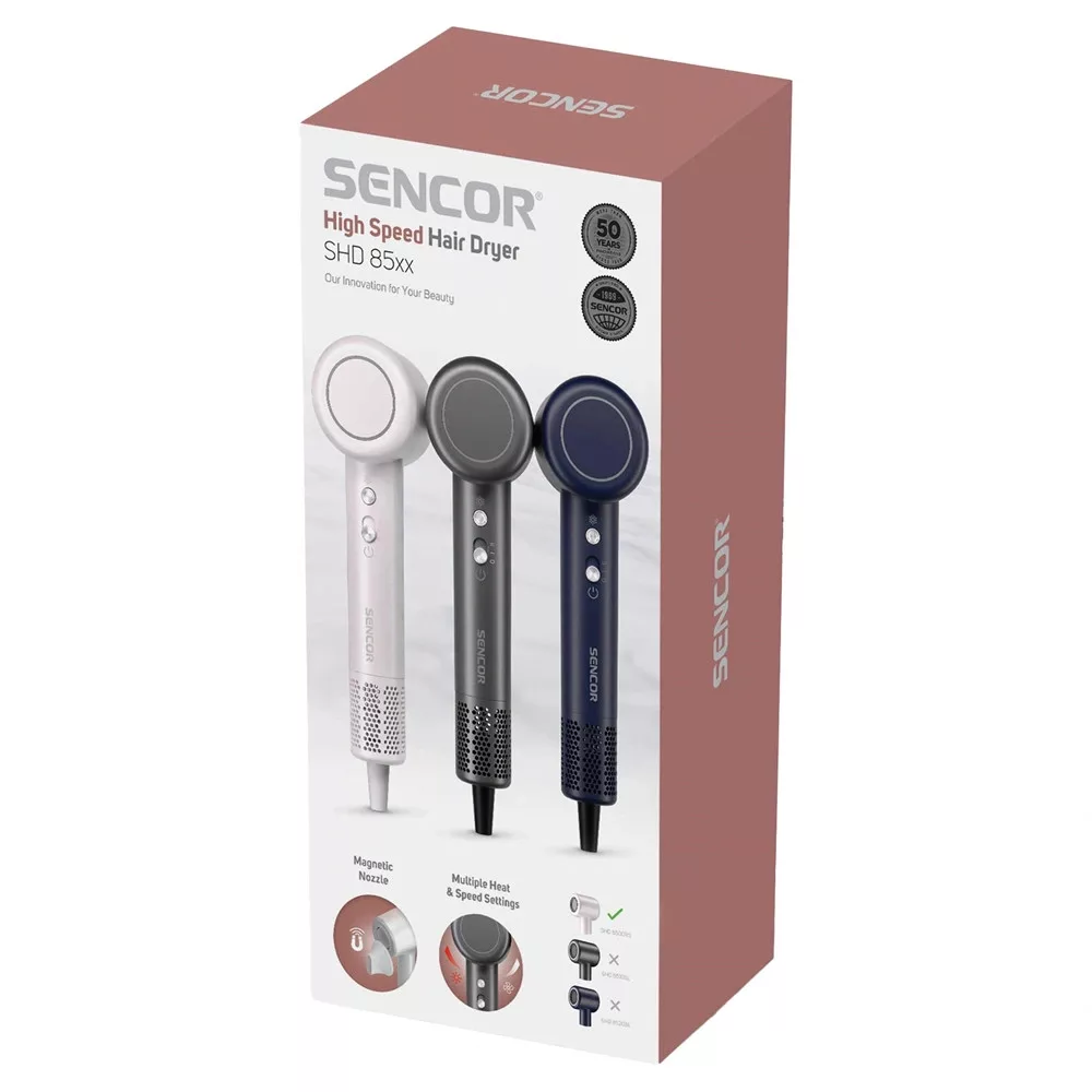 A mágneses kialakítású fúvóka precíz irányíthatóságot biztosít, így pontosan ott koncentrálható a légáram, ahol szükség van rá – akár a hajtövek megemeléséhez, akár a hajvégek formázásához. Az eszköz modern és ergonomikus kialakítása, valamint csendes működése valódi luxusérzetet nyújt a mindennapi hajápolási rutin során. A Sencor SHD 8500RS nemcsak egy hajszárító – ez egy prémium minőségű, professzionális eszköz az igényes felhasználók számára.