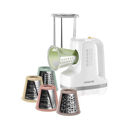 A Sencor SSG 4300WH segítségével könnyen és egyszerűen apríthat, szeletelhet, reszelhet. Pillanatok alatt készítheti elő a különböző zöldségeket a salátákhoz, az 5 cserélhető betéteknek köszönhetően különböző alakzatú ételeket készíthet vagy felhasználhatja dekoráció céljából. Talpai csúszásmentesek így könnyedén és biztonságosan kezelhető. Az 56 mm-es töltőtorokba az alapanyagok előzetes darabolás nélkül is egyszerűen behelyezhetők.