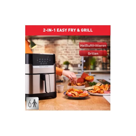 Az Easy Fry & Grill egyesíti a légsütőt és a grillsütőt az egészséges és ropogós sütéshez, kevés olajjal vagy anélkül, valamint beépített grill funkcióval a tökéletes grillezési ízért extra grillnyomokkal.