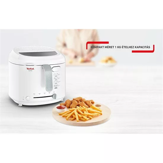 A Tefal Uno elektromos fritőzzel az egész család számára megfelelő kapacitású fritőzre tehet szert! A nagy, 1 kg-os kapacitásnak köszönhetően kiváló négytagú családok számára, a kompakt méretének és a behajtható fogantyúnak köszönhetően kevés helyet foglal el és könnyen tárolható bármely konyhában.