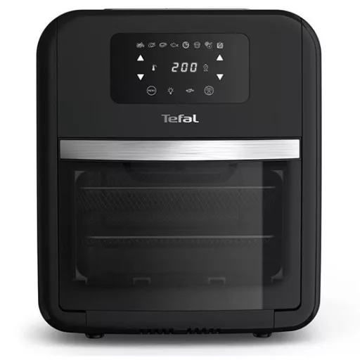 A Tefal Easy Fry Oven & Grill olaj nélküli fritőznél egyetlen sokoldalú légkeveréses készülékben kilenc funkciót tartalmaz és használatával egyszerre akár három ételt is készíthet. 8 előre beállított automata programja segítségével játszva elkészíthetők a finom ételek, míg az öntöttvas grillezőrács, a további kiegészítő sütőrácsok és a praktikus kiegészítők további olyan finom ételek elkészítését teszik lehetővé, amelyek az egész család kedvenc ételeivé válnak.