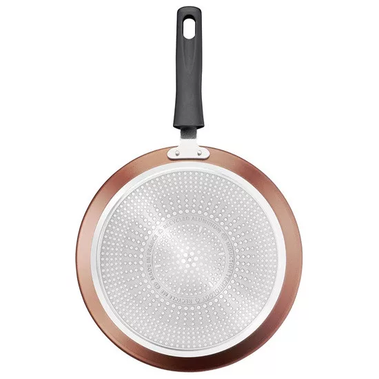 A Tefal úttörő a körforgásos gazdaság területén és mindig aktívan bekapcsolódott a környezet védelmébe. A Respect terméksorozat mindig egy lépéssel előbb jár: a palacsintasütő test 100%-ban újrahasznosított alumíniumból készült. Az újrahasznosított alumínium gyártása, amelyből a serpenyő készül 90 %-al kevesebb energiát igényel az előállításhoz, mint az új alumínium*. És minden termék kompromisszumok nélküli minőségben és innovációkkal készül. A Titanium Pro kétszer tovább bírja a standard Tefal Titanium felülethez képest és hosszantartó teljesítményt nyújt, továbbá könnyen tisztítható belső és külső tapadásmentes felülettel ellátott. A Thermo-Signal™ technológia jelzi a tökéletes sütéshez és ízletes eredmények eléréséhez szükséges ideális kezdőhőmérséklet elérését, míg a Thermo-Fusion™ edényalj optimális hővezetést biztosít az egyenletes eredmények érdekében. Fedezze fel a nélkülözhetetlen palacsintasütőt, amelyet a tökéletes, aranybarnára sült palacsinták készítésére terveztek, amelyben egyúttal valódi édes- vagy sós francia palacsintát is süthet. Mivel mindannyian hozzájárulhatunk a bolygónk védelméhez, ne feledkezzünk meg a főzőedények újrahasznosításáról sem. * Újrahasznosított alumínium az új alumíniumhoz képest