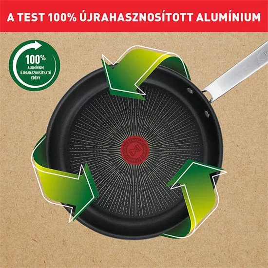 A 100%-ban újrahasznosított alumíniumból*készült edénytest hozzájárul a környezeti hatások csökkentéséhez: