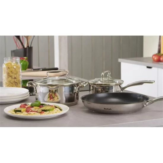 Finom ételek készítése minden nap még soha sem volt könnyebb! A Duetto+ egy sokoldalú rozsdamentes acél edény és serpenyő készlet, amely például segít elkészíteni a grillcsirkét a tökéletes Caesar salátához, vagy egy ellenállhatatlan finom quesadillast és rengeteg, konyhában töltött időt takarít meg Önnek annak érdekében, hogy több időt tölthessen a szeretteivel és több ideje jusson a kedvteléseire! Az elsőosztályú rozsdamentes acélból készült serpenyő rendkívüli tartósságot és hosszú élettartamot kínál, 10 év garanciával. A belső oldala tartós és hosszú élettartamú tapadásmentes felülettel ellátott a könnyű főzés és tisztítás érdekében, a külső oldala pedig tartós szegecselt fogantyúval felszerelt a nagyobb biztonság érdekében. Ez a serpenyő minden konyhába jól illő elegáns formatervvel készült, és Thermo-Signal™ hőmérséklet-jelzővel felszerelt a tökéletes főzési eredményekért minden nap. A Duetto+ serpenyő minden főzőlappal kompatibilis, beleértve az indukciósat is, tehát sohasem okoz csalódást!