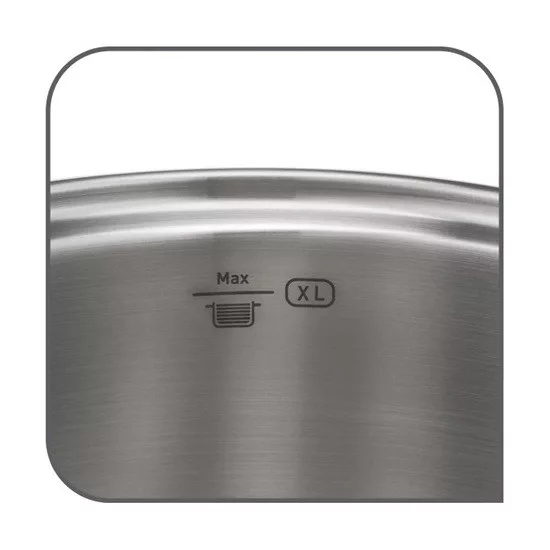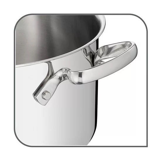 Az eredmény a gondtalan főzés és a gyorsabb tisztítás! A belső oldalon elhelyezett, könnyen leolvasható jelzők pontos főzést és kiváló eredményeket biztosítanak. A külső oldalon rendkívül erős, szegecselt fogantyúk találhatók, amelyek hosszú időn át biztonságos tartást garantálnak. A minden konyhába jól illő, elegáns formatervű edényekhez üveg fedők tartoznak, amelyek megkönnyítik a főzés felügyelését.