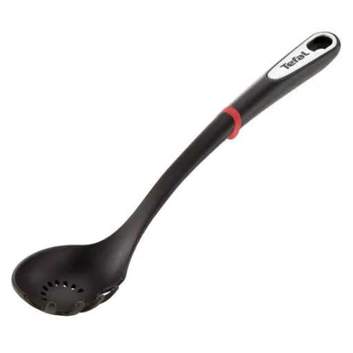 A Tefal Ingenio Tésztaszedő kanál egy minőségi Nylon anyagból készült konyhai eszköz, melyet 15% üvegrosttal erősítettek meg a szilárdság fokozása érdekében. Stabil és szilárd nyele ellenáll a terhelésnek, a kisméretű piros elem segítségével könnyedén edény falának támasztható az eszköz, mely megkönnyíti a főzés folyamatát. Egészen 230°C-ig hőálló, könnyen tisztítható, mosogatógépben mosható. A Tefal edények és eszközök anyaga környezetbarát, nem tartalmaz ólmot, kadmiumot, BPA-t vagy flatálokat.