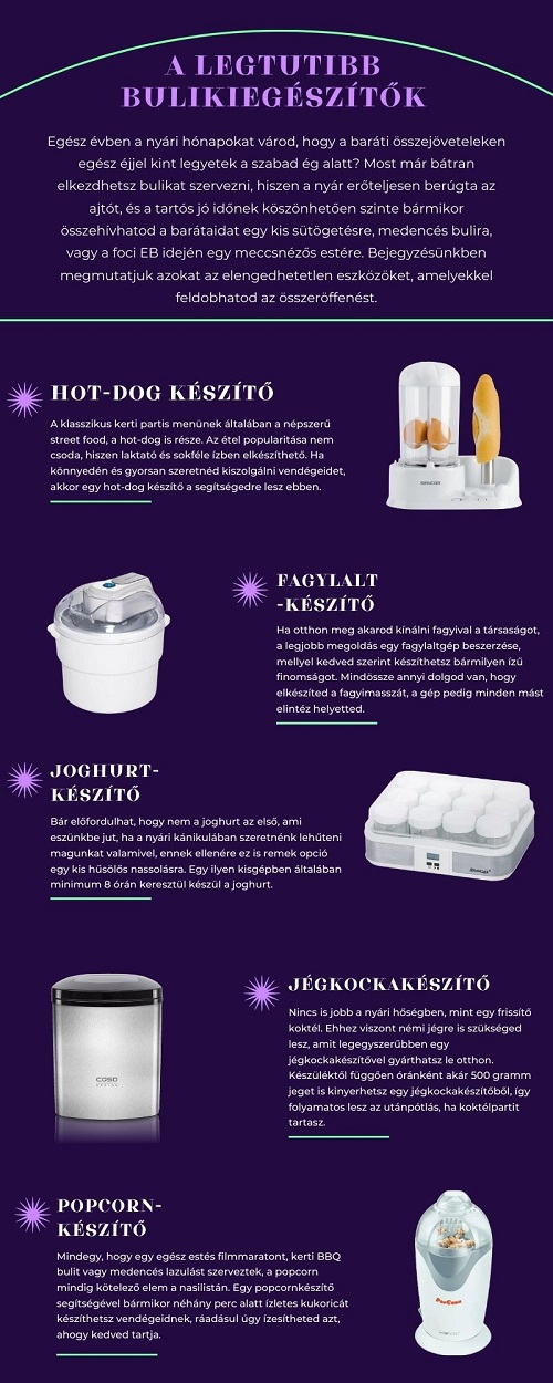 Egész évben a nyári hónapokat várod, hogy a baráti összejöveteleken egész éjjel kint legyetek a szabad ég alatt? Most már bátran elkezdhetsz bulikat szervezni, hiszen a nyár erőteljesen berúgta az ajtót, és a tartós jó időnek köszönhetően szinte bármikor összehívhatod a barátaidat egy kis sütögetésre, medencés bulira, vagy a foci EB idején egy meccsnézős estére. Bejegyzésünkben megmutatjuk azokat az elengedhetetlen eszközöket, amelyekkel feldobhatod az összeröffenést.