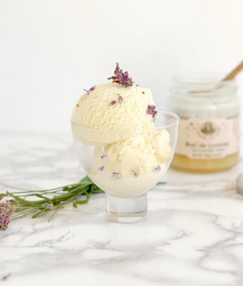 A tejszínt a tejjel melegítsd fel, majd add hozzá a mézet és a levendulát. Hagyd állni fél óráig, majd szűrd le. A tojássárgákat verd habosra, majd forrald össze a tejszínnel. Öntsd hozzá a fehér csokoládét, és folytonos kevergetés mellett olvaszd fel. A fagyimasszát tedd a gépbe hűlni. (Recept forrása: nlc.hu)