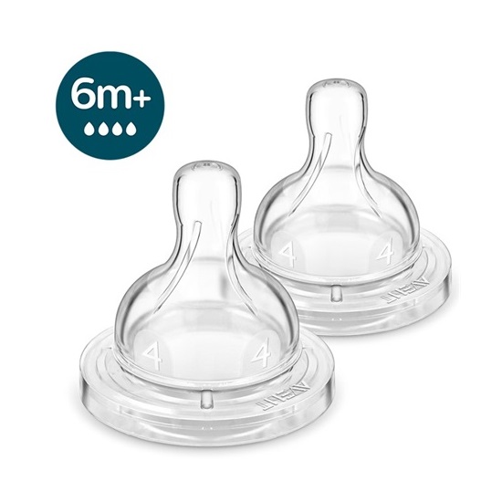 A hasfájást csökkentő cumisüvegekhez való 4. átfolyási sebességű cumifej beépített szeleppel rendelkezik, amely megakadályozza, hogy a levegő a baba pocakjába kerüljön; 6 hónapos kortól ajánlott.