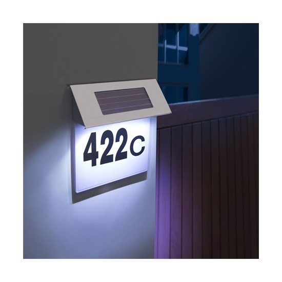 Elegáns szolár házszám fény, ami minden bejáratot különlegessé varázsol. A felső megvilágítású, szabadon lógó plexi lemezre akár 3 jegyű szám is elfér, így házszáma éjszaka, rossz látási viszonyok között is leolvasható marad. Az csomagban lévő öntapadós számok közül tetszés szerint kiválaszthatja az Önnek szükségeset!