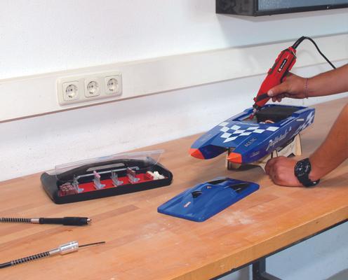 A puha fogónak és az ergonomikus kialakításnak köszönhetően jól illeszkedik a kézbe. A csiszoláshoz, fúráshoz, maráshoz és sok más munkához való különlegesen sok, 189 db tartozékrész ugyancsak a szállítási csomag része, és mindezt a praktikus tartó táska tartalmazza.