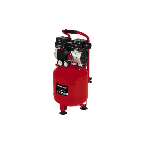 A TE-AC 24 Silent kompresszor egy olyan multifunkcionális alapkészülék, amely nem hiányozhat egyetlen garázsból és műhelyből sem! A kompresszort alacsony zajkibocsátása 57dB (LpA/hangnyomásszint) teszi egyedivé. A készülék rendkívül halk, 750 watt teljesítményének köszönhetően pedig biztos lehet abban, hogy mindig lesz elegendő mennyiségű és intenzitású levegő a munka elvégzéséhez. A kompresszor jelentősen halkabb, mint az azonos teljesítményű hagyományos kompresszorok. A készüléket csekély karbantartást igénylő, olaj- és karbantartásmentes motorral tervezték. A vízleeresztő csavar kényelmes és egyszerű karbantartást tesz lehetővé. A 24 liter űrtartalmú tartály mindig elegendő mennyiségű levegőt biztosít ahhoz, hogy a megfelelő szerszámokat csatlakoztatva pillanatok alatt felvigye a festék- és lakkrétegeket. A nagyobb fafelületeket is könnyedén impregnálhatja, ha olajat használ festék helyett. Festéshez vagy homokfúváshoz szeretné használni? A kompresszor mindkét területen megállja a helyét! A készülékkel könnyedén felfújhatja a labdákat, gumimatracokat, vagy az autók és (motor)kerékpárok kerekeit. Az Einhell elhivatottan bízik termékei minőségében, ezért a tartályra 10 év rozsdamentességi garanciát vállalunk. A kompresszor nyomáscsökkentő használatával max. 8 bar nyomásig számos feladatra használható. A kompresszort nyomásmérővel és gyorscsatlakozóval szerelték fel, melyek lehetővé teszik, hogy szabályozott üzemi nyomással dolgozzon. A kompresszoron található egy másik nyomásmérő is, ami a tartályban lévő nyomást mutatja. A felhasználó biztonságáról a biztonsági szelep gondoskodik. A kompresszor néhány mozdulattal szállíthatóvá alakítható. A rezgéscsillapított lábak használat közben maximális stabilitást biztosítanak. A készüléket állított helyzetben, helytakarékosan tárolhatja.