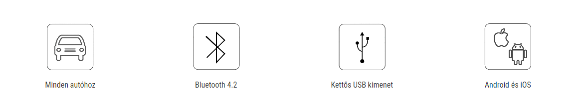 • Autós töltő, 2 db.USB csatlakozó max. 3.4A