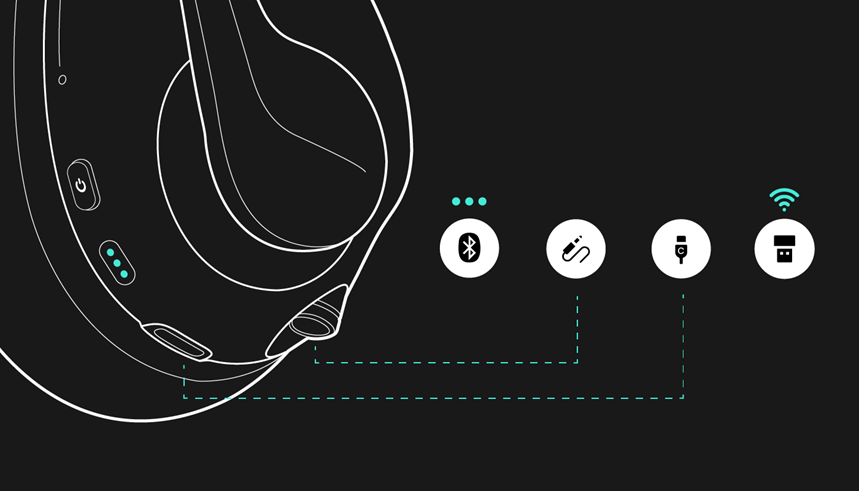 A H3PRO Hybrid headset biztonságos, késleltetésmentes vezeték nélküli működést kínál, többféle csatlakozási lehetőséggel.
