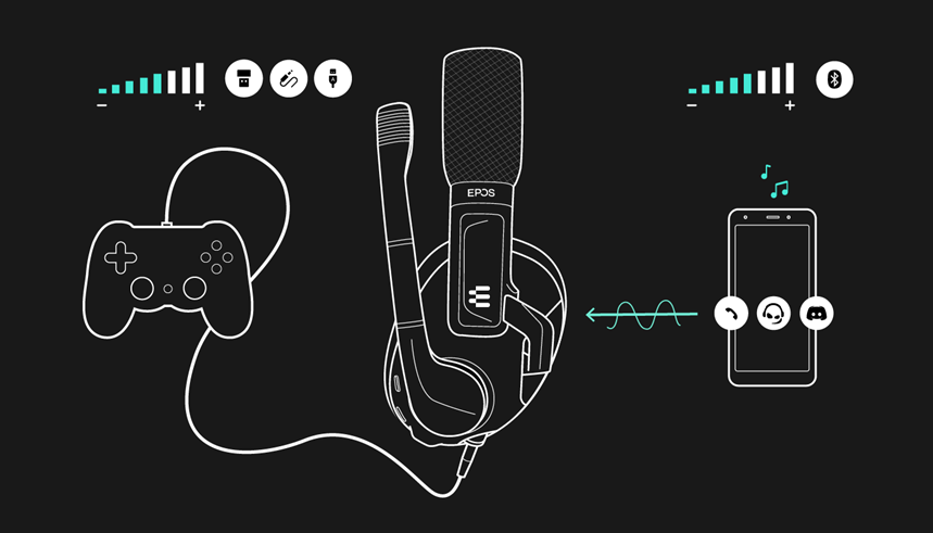 A Simultaneous Bluetooth® technológiának köszönhetően az audio streameket okostelefonod segítségével késleltetésmentes vezeték nélküli vagy vezetékes kapcsolaton keresztül is mixelheted. Mivel az egyes audio streamek hangereje külön-külön szabályozható, a heroikus csaták közepette is telefonálhatsz vagy chatelhetsz barátaiddal. Az iOS eszközök nem mixelik a hívások hangját a dongle-kapcsolattal. Ehelyett a headset a hangot mobileszközödre irányítja, majd a hívás végeztével újra visszatér a játék hangjához.