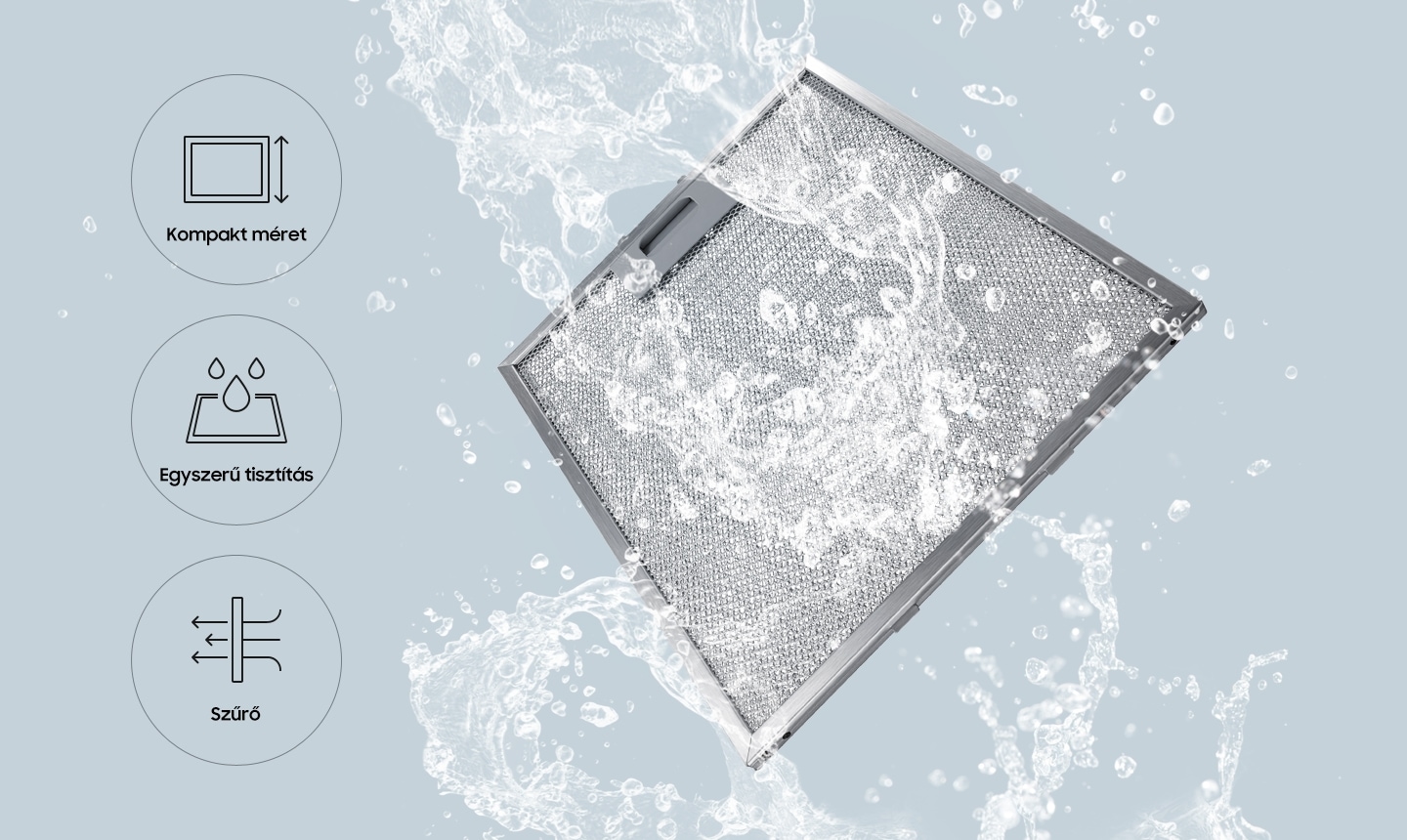 - Elszívó szűrő: Mosható Alumínium szűrő, szénszűrő