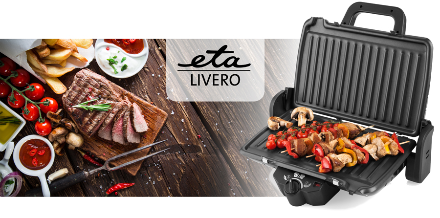 Az ETA Livero ETA415590000 egy tökéletes kontakt grill strapabíró fém kivitelben, 1600 W teljesítménnyel. Ideális sokféle hús, hal és tengerigyümölcs, zöldség, pékáru és toastok grillezésére.