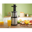 A préselési folyamat során a visszamaradó gyümölcshús egy külön tartályban gyűlik. A pép mennyiségét beállíthatod a prés elején található mozgó kar segítségével. Fogyaszd el élvezettel egy pohár selymesen lágy zöldség- vagy gyümölcslevet, vagy adjunk hozzá zöldség- és gyümölcsdarabokat az italhoz, hogy kissé darabossá váljon. Ne dobd ki a pépet anélkül, hogy megpróbálnád más ételekbe, pl. levesekben, szószokban, desszertekben felhasználni.
