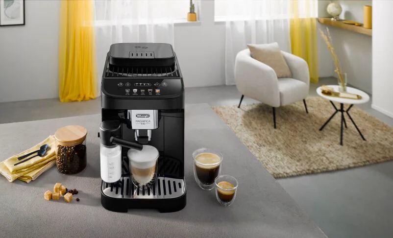 A Magnifica Evo a De'Longhi élményt testesíti meg fejlett technológiájával, autentikus italaival és elegáns, ezüst és fekete dizájnjával.