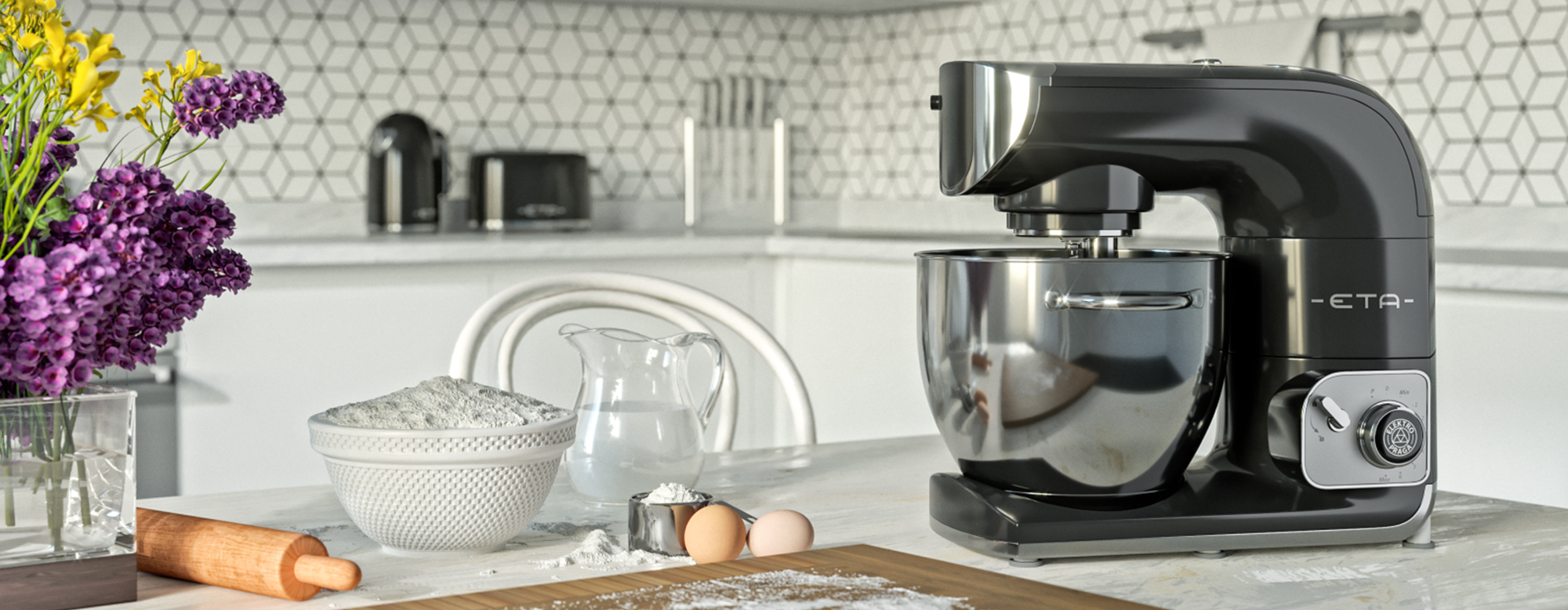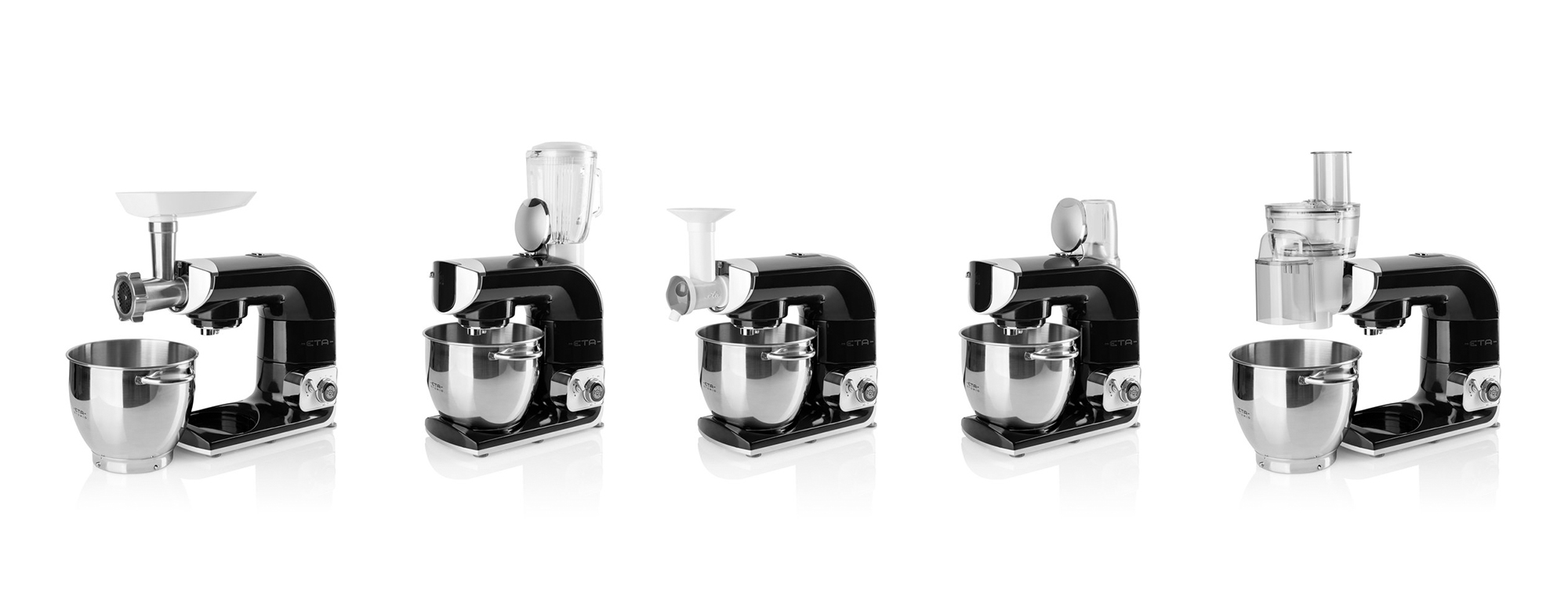 Csomagolásában tartozékok széles skálája található meg, mellyel kedvenc finomságait készítheti el. Nagy kapacitású 5,5 l-es rozsdamentes edénye átlátszó fedéllel a hozzávalók töltéséhez való lyukkal felszerelt. Megtalálható még dagasztó horog, habverő lapát, keverő lapát, optimális magasság beállításához való kulcs, flexi lapát, amely krémek és könnyű tészták készítéséhez használható.