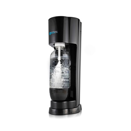 SodaCo R100B Royal Szódakészítő gép, fekete A SodaCo legújabb, modern megjelenésű szódakészítő gépe. Műanyag, fekete színű háztartási szódakészítő gép. Használatával pillanatok alatt friss, szénsavas vizet készíthetünk. Környezetbarát és takarékos választás, mert nem károsítjuk környezetünket a bolti ásványvizek hazacipeléséből származó sok műanyag hulladékkal. A csomag tartalma egy szódakészítő gép, egy 425 grammos CO2 patron és egy BPA mentes, 1 literes szénsavasító flakon. Egy teli patronnal átlag 60-80 liter szóda készíthető, a szénsavasság mértékétől és a gép típusától függően. Anyaga: műanyag