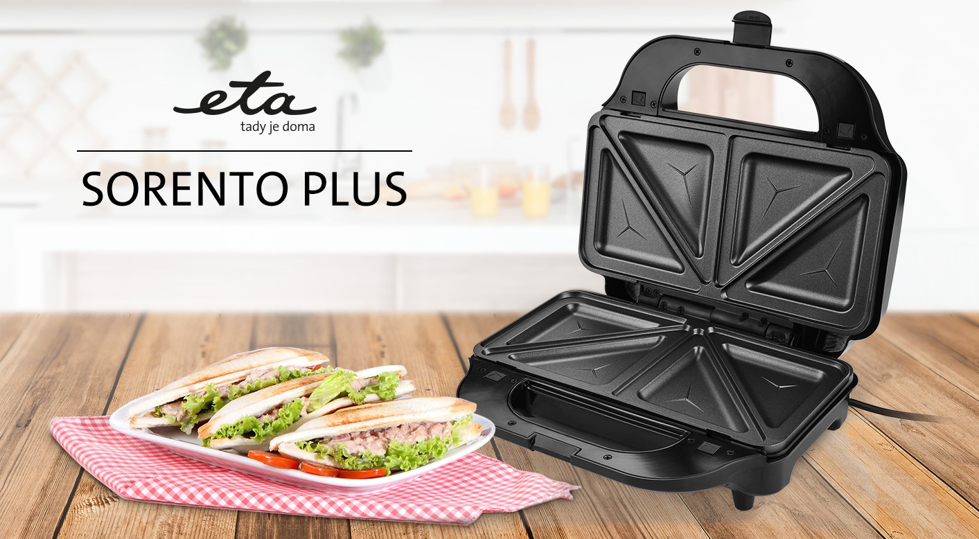 Az ETA Sorento Plus szendvicskészítő sokoldalúságának köszönhetően a család minden tagja számára kedvelt konyhai eszközévé válik. Sokoldalú használata mellett, melyet hatféle cserélhető tányérja nyújt, a Sorento Plus szendvicsütő megkönnyíti a mindennapi ételkészítést.