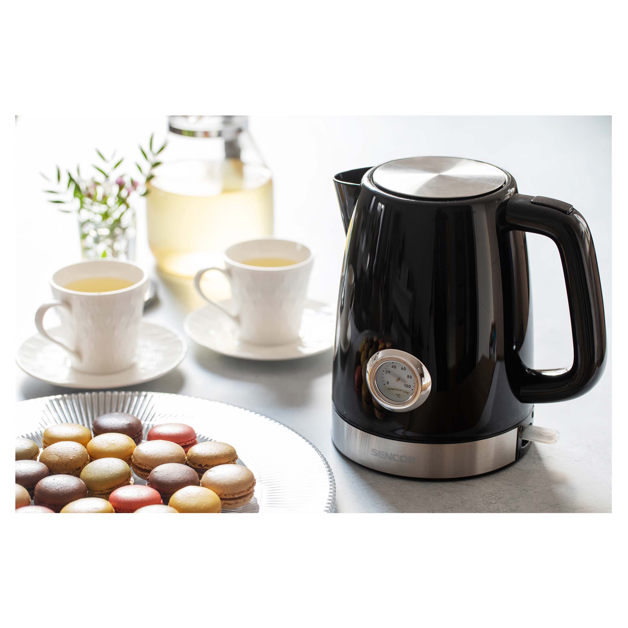 Bizonyos tea típusokhoz, vagy egyéb receptekhez fontos az optimális vízhőmérséklet biztosítása. A vízforraló oldalára beépített hőmérő segítségével ezentúl mindig pontosan tudni fogja a kannában lévő hőmérsékletet.