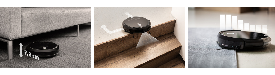 - SLIM DESING - mindössze 7,2 cm magasságával alacsony bútorok alatt is porszívózik