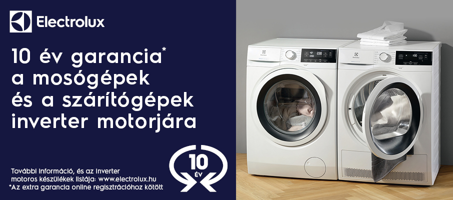Hiszünk abban, hogy az inverter motorral működő mosógépeink, mosó-szárítógépeink és szárítógépeink hosszú időn keresztül segítenek Önnek tisztán és jó formában tartania ruháit, anélkül, hogy meghibásodnának. Ezért a törvényben meghatározott, 1 év garancia időn felül adunk még 9 év extra garanciát az inverter motorra. Az ajánlat minden Electrolux inverter motoros mosógépre, szárítógépre és mosó-szárítógépre vonatkozik, és visszavonásig érvényes.