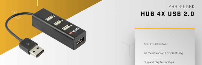 Prémium minőségű, négy csatlakozós USB Hub, melynek köszönhetően több eszközt is használhatunk egyszerre (egér, billentyűzet, nyomtató, stb.), mint a számítógépen rendelkezésre álló USB csatlakozó.