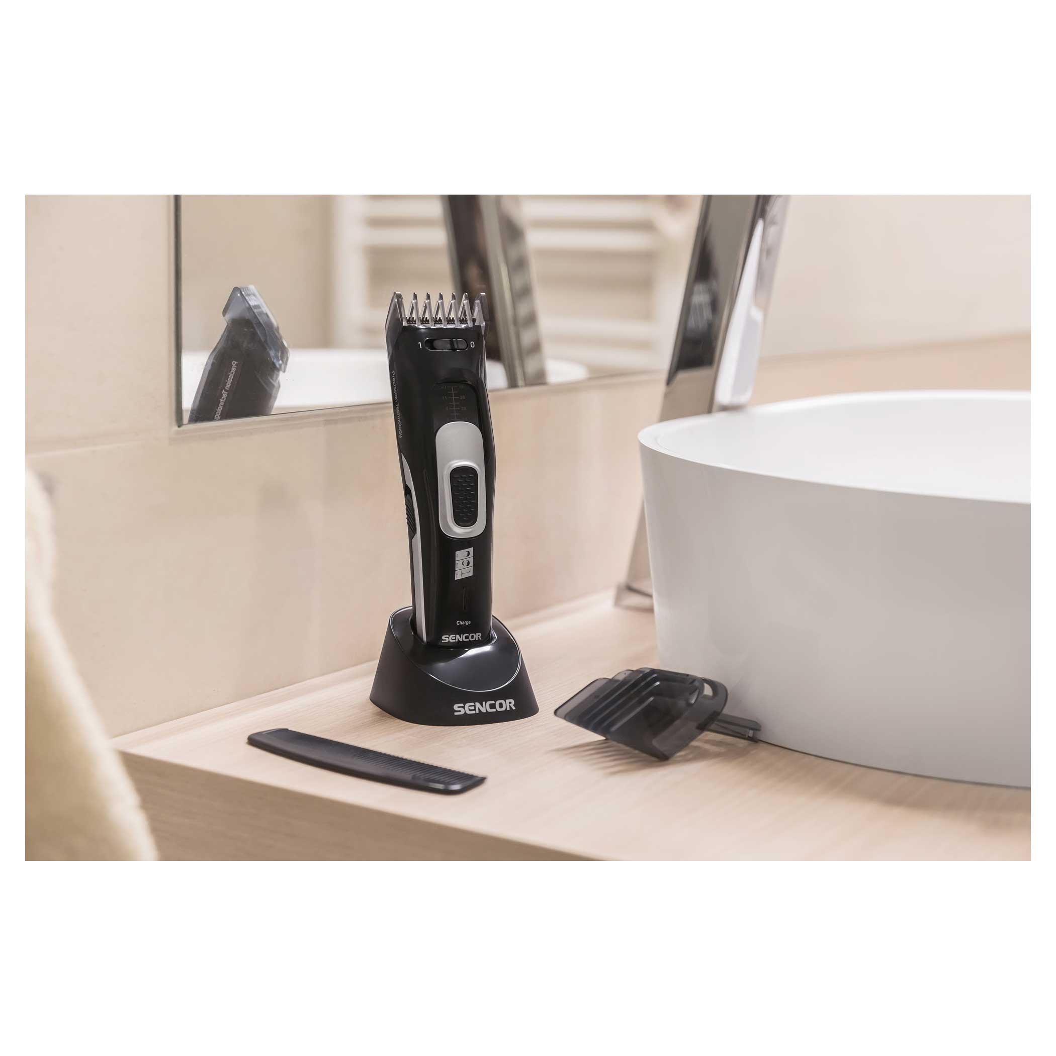 A Sencor SHP 4501BK hajnyíró készülék kiválóan alkalmas a haj vagy a szakáll formázására, igazítására. A készülékhez tartozik 2 különböző méretű trimmelő fej az egyedileg fejlesztett Lock-Up rendszerrel. Mindkét feltét segítségével 4 különböző hosszúságban tud hajat vágni.
