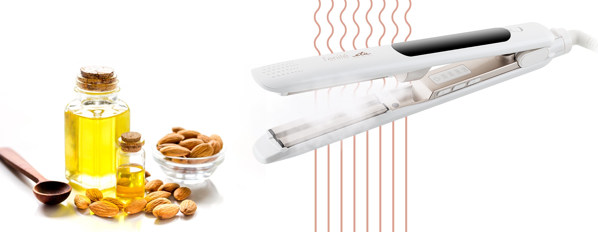 Az ETA FENITÉ hajvasaló fel van szerelve gőzölő vasalással. A gőz segítségével a hajat hatékonyan és gyorsan megigazíthatja. A víztartály kapacitása 7,5 ml, amely akár 20 perces gőzölést biztosít. A víztartály a könnyű töltés érdekében kivehető.