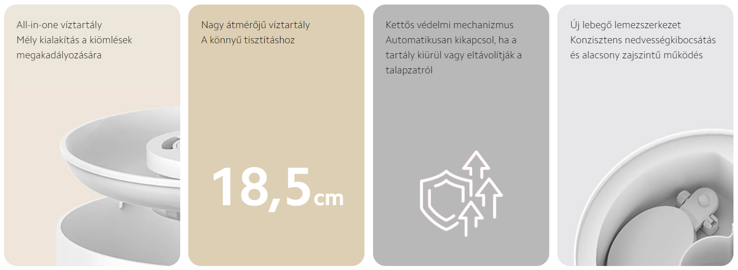 Az új lebegő lemezszerkezet minimális zajjal nedvesíti a levegőt, hogy biztosítsa a nyugodt alvást.
