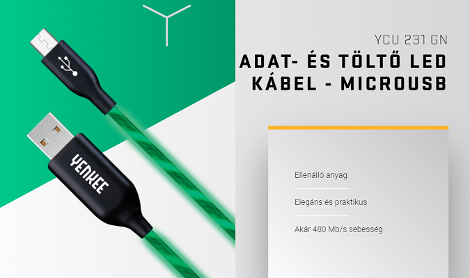Különleges kábel, amely segít egyszerűsíteni a mindennapi teendőket. Fő előnye a kábelt borító LED-diódák. Rögtön a csatlakoztatás után (legyen az a számítógép vagy a konnektor) áramlani kezd benne a fény, amely minden megszokott helyiségből varázslatosan fénylő mágikus helyet varázsol. A világítás intenzitása az áram erősségétől függően módosul, és teljes feltöltöttség esetén automatikusan kikapcsol.